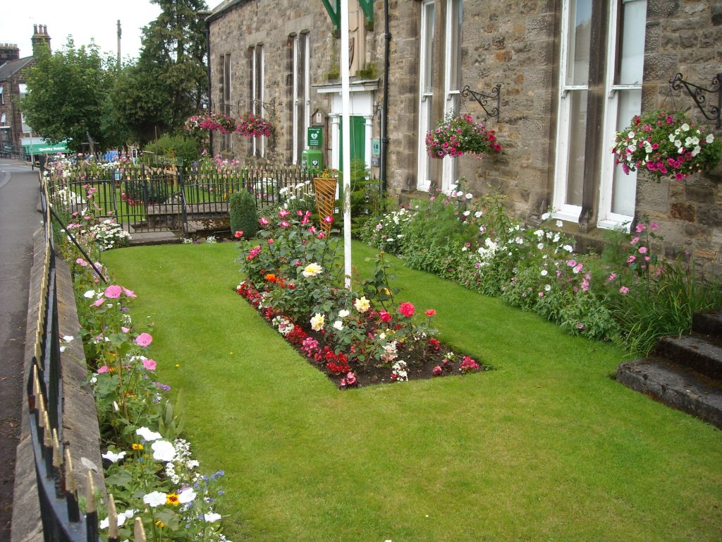 Among the glories of the town hall are the beautiful gardens, set off by the proudly fluttering Northumbrian flag. The gardens are lovingly tended by Edwin and Pat Wilkinson, who spend many, many hours digging, weeding, and planting to maintain a glorious wealth of colour all the year round, providing a warm welcome to the village.