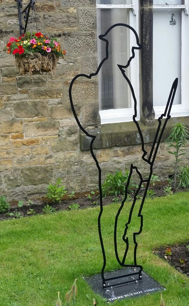 Made by the charity There But Not There, the Tommy silhouette – one of a chain across the country – was erected to mark the 100th anniversary of the end of the Great War, and will later be moved to the village war memorial, which is the lych gate at the cemetery.